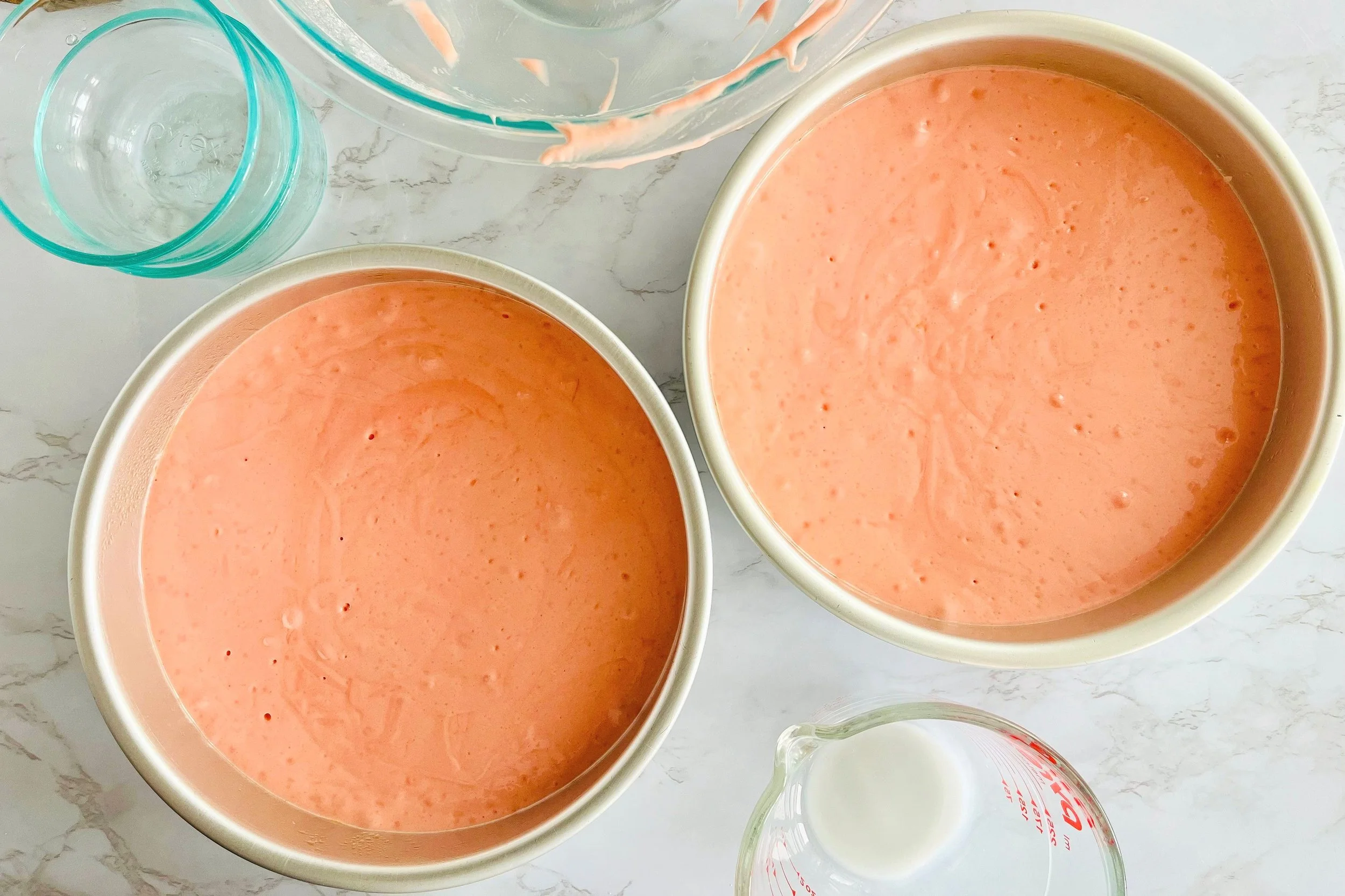 - Bake the Strawberry Cake Layers: Preheat your oven to 350°F (175°C). Use my Easy Cake Pan Release recipe to grease two 8-inch round cake pans.